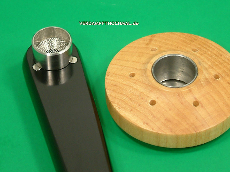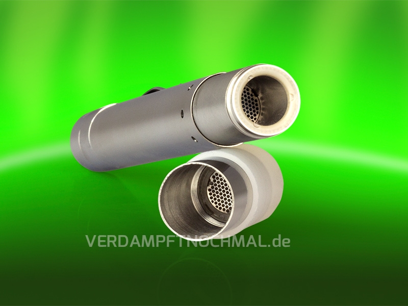 Kammer mit Kräutern füllen, Titanmodul aufsetzen, Temperatur einstellen (deutlich über „normalem“ Vape-Level). Kombiniert Konduktion und Konvektion und sorgt für besonders dichte Dampfentwicklung.