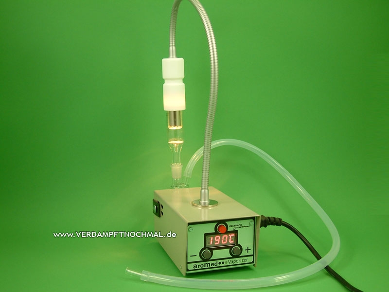 Der Aromed war der erste Vaporizer mit medizinischer Zulassung und nutzt eine Halogenlampe als Hitzequelle.