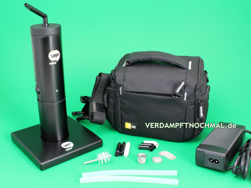 Tragbarer Desktop-Vaporizer. Das Gerät lässt sich einfach von Akku- auf Netzbetrieb umbauen.
