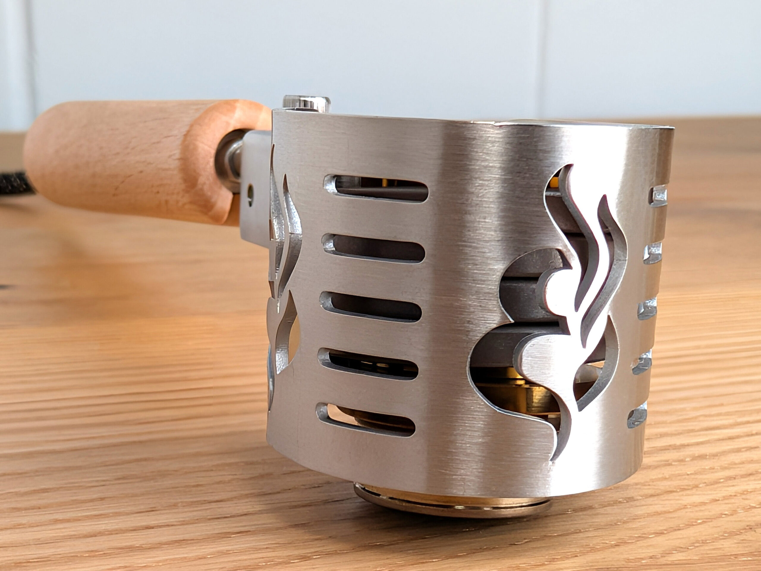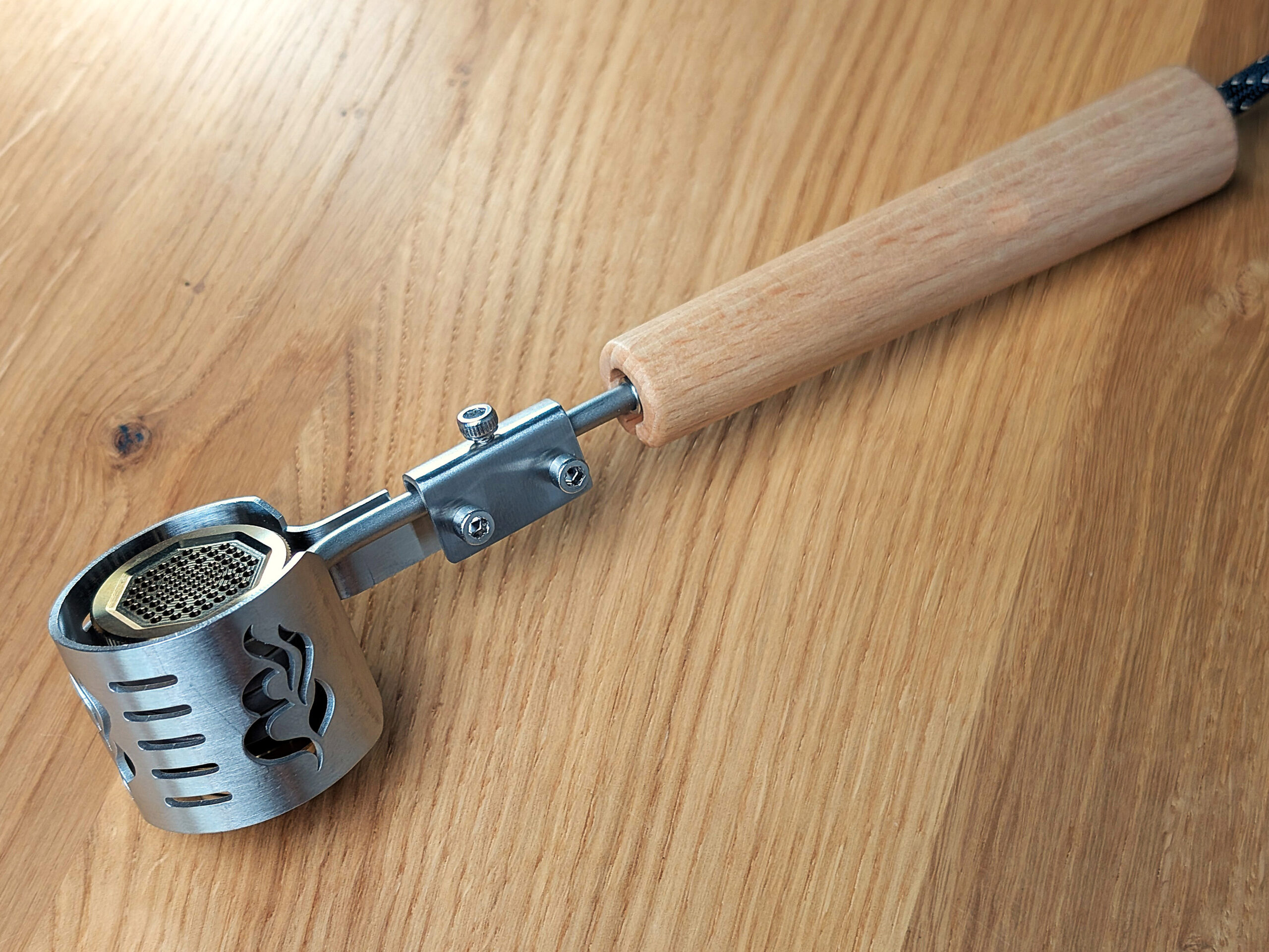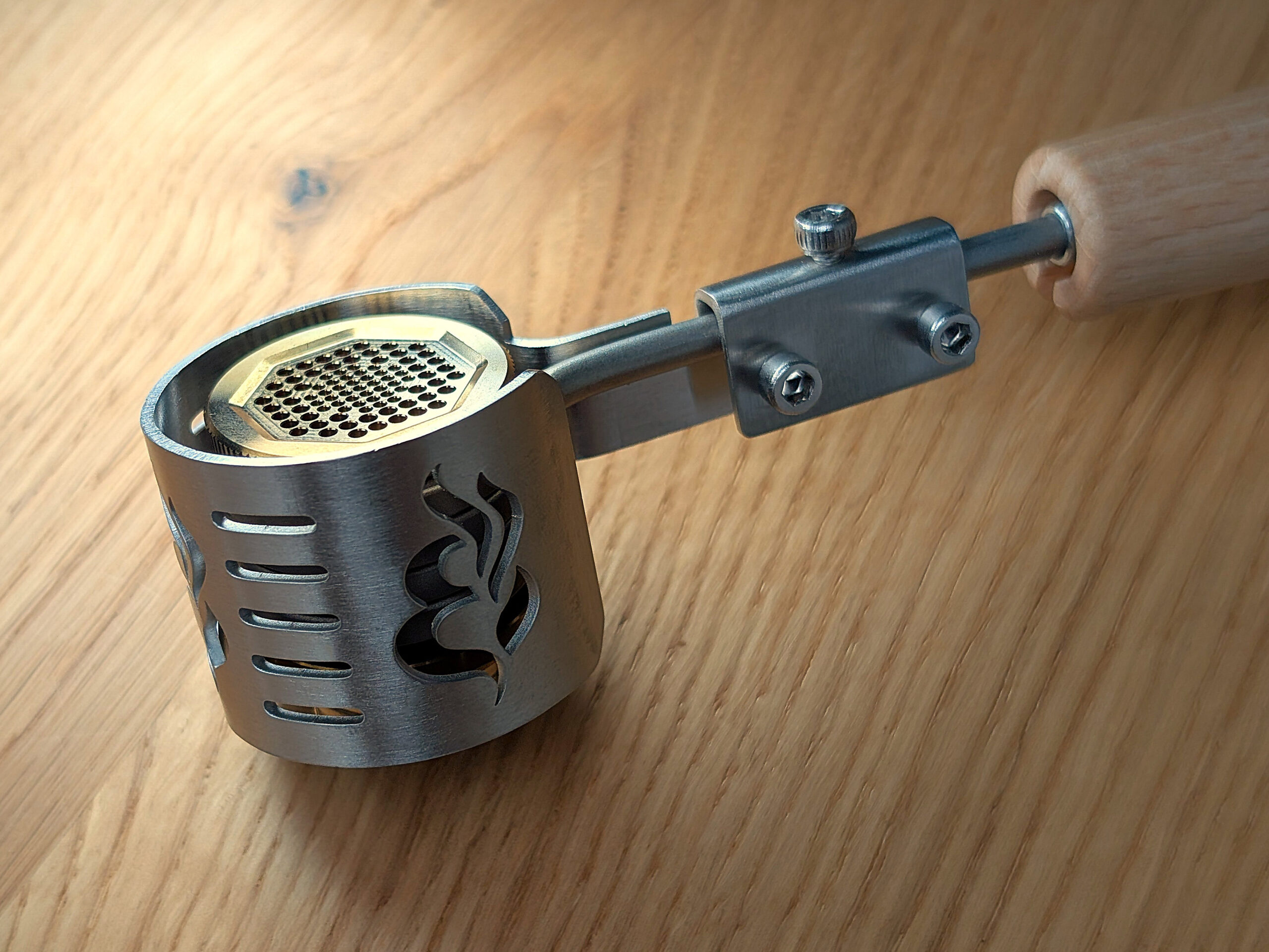 We recommend grinding the material fairly fine and stirring the herb chamber occasionally. With a bit of practice, you can control the heat very well by adjusting the flame distance and your inhalation speed.