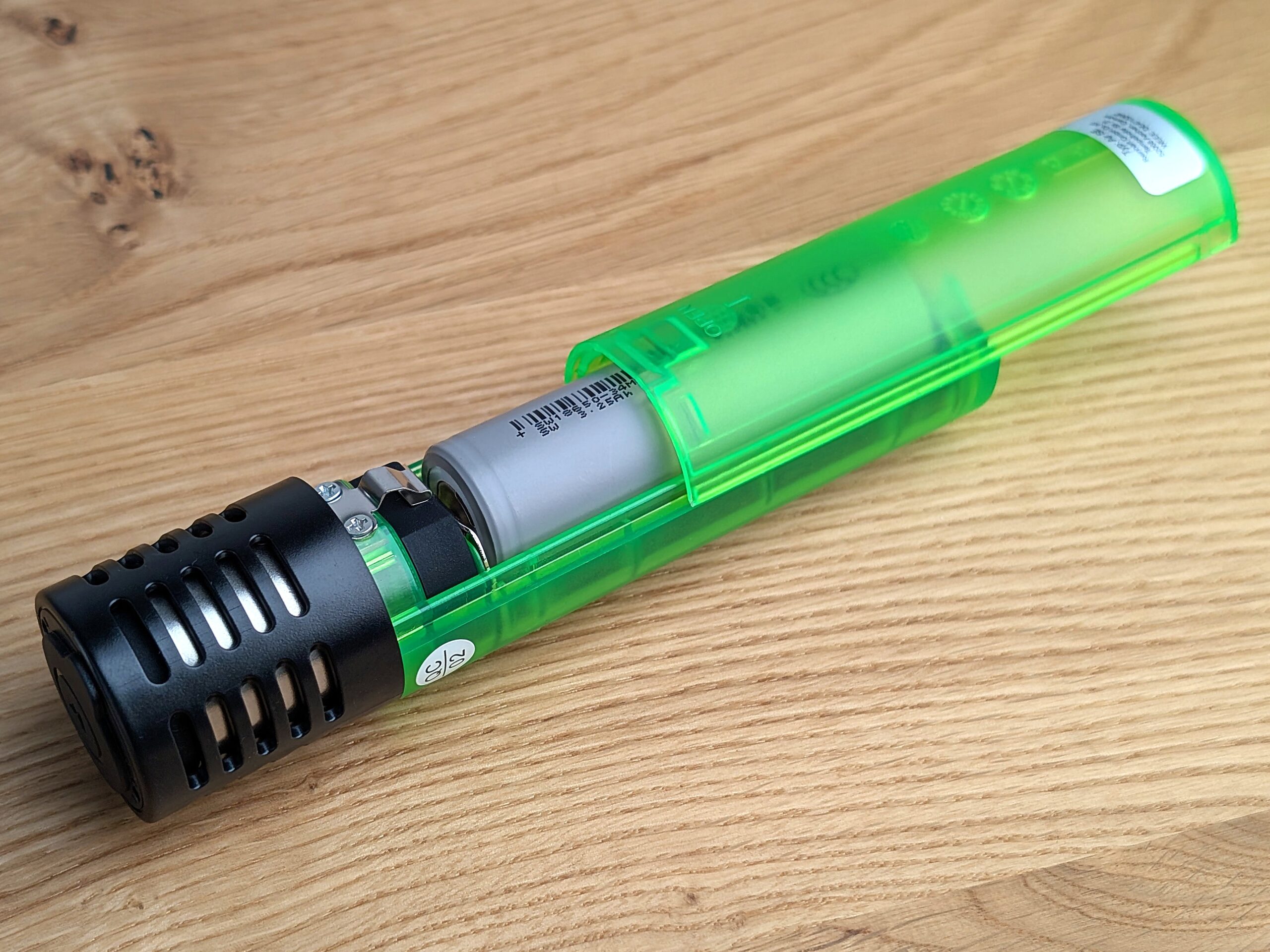 The replaceable 18650 battery provides about 7–8 sessions of use and can be charged via Micro-USB. Thanks to the pass-through function, you can also vape while charging.