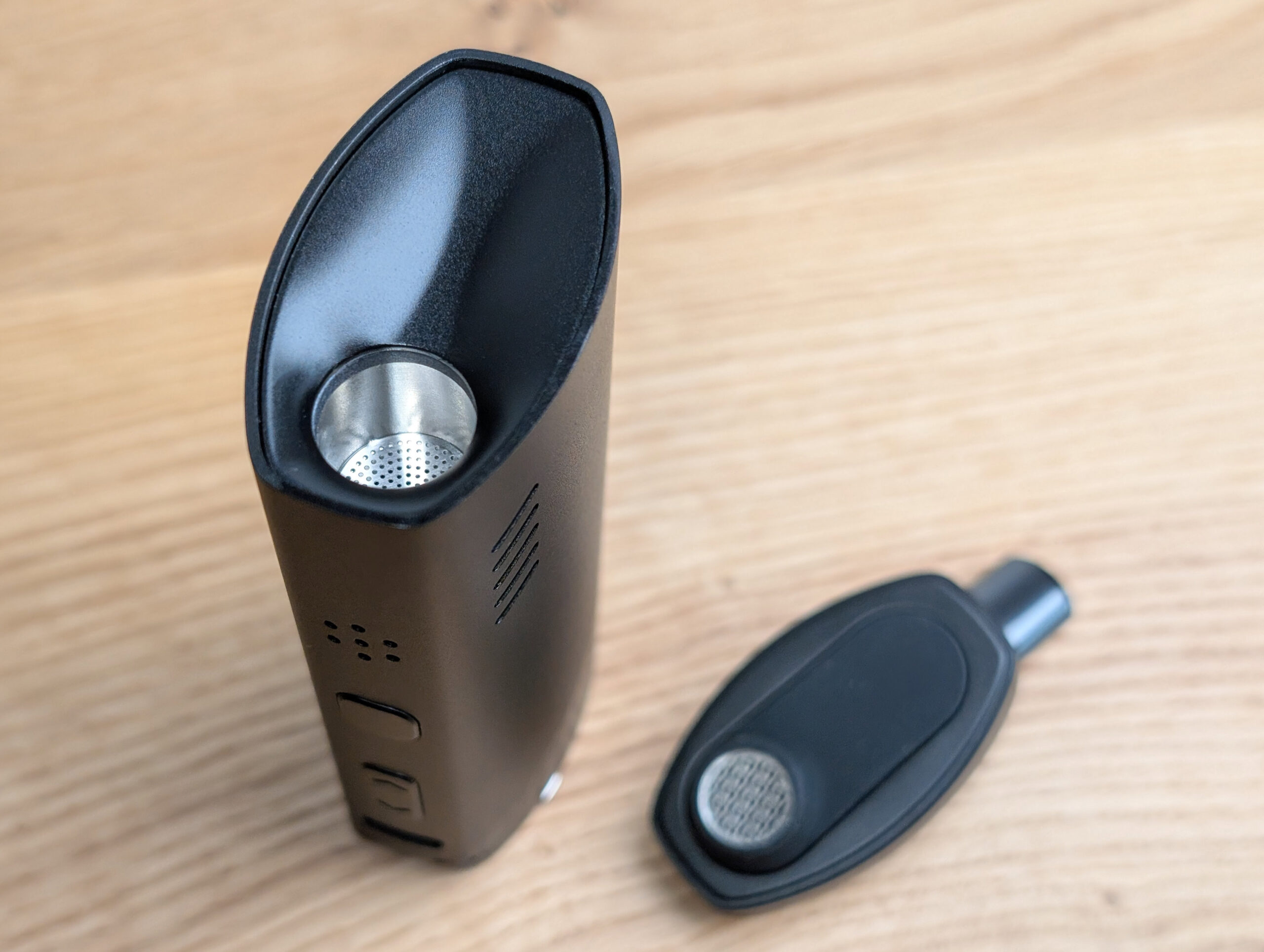 Practical: The mouthpiece has a built-in tool for easily stirring or emptying the chamber. Bong users can attach a water filter. You can also use herb and concentrate capsules, which help keep the device clean and make on-the-go switching easy. The removable battery lasts about 6–7 sessions and can be quickly recharged via USB-C.