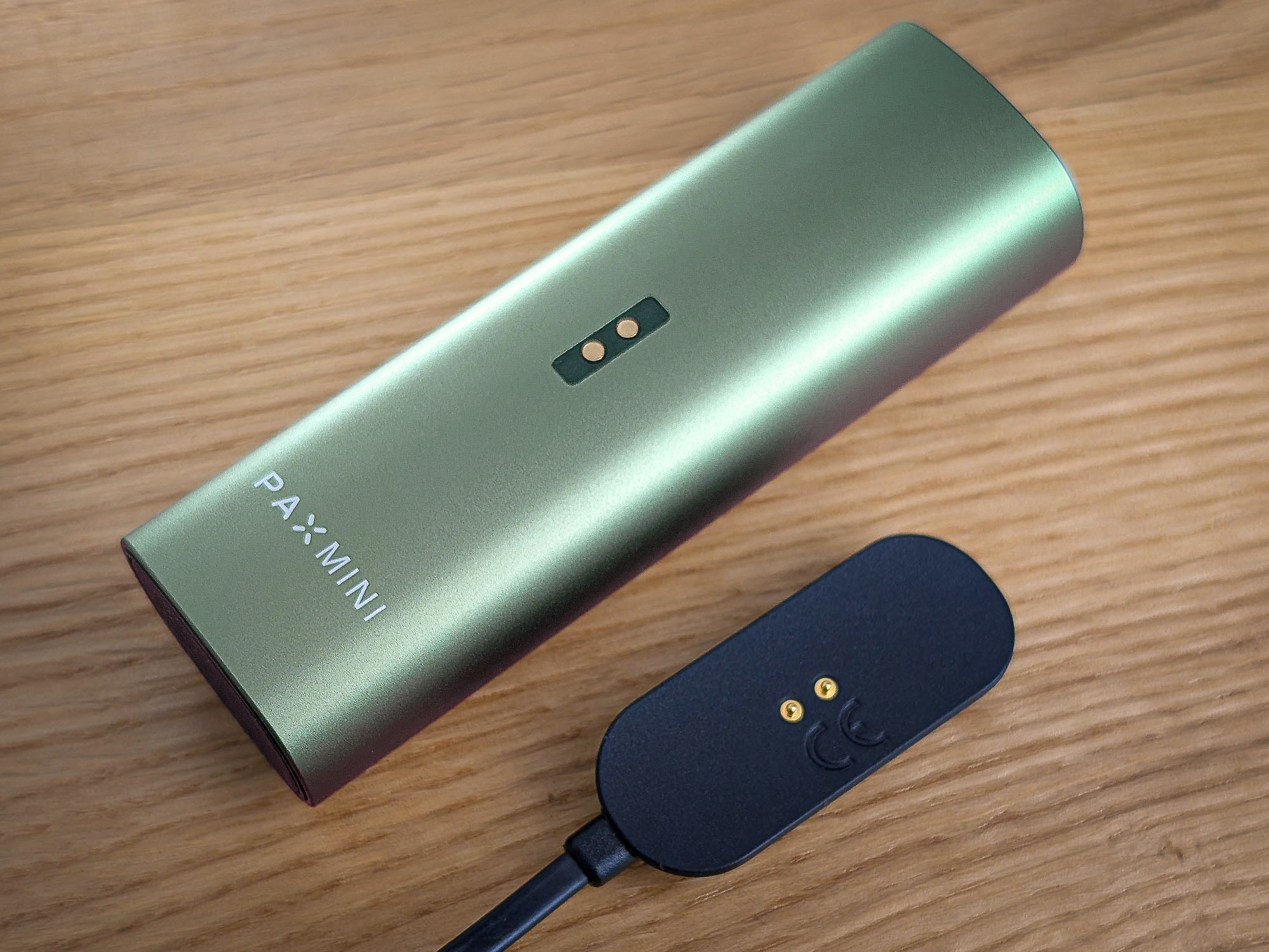 The battery life is about an hour. To check the battery status, you briefly shake the device, and the LEDs inform you about the remaining capacity. On the back, the Pax Mini 2 has a port for the magnetic charging cable—just lay it on and charge—no annoying fumbling with cables. Check out our wooden charging station or the Vapo Dock, they are not only practical but also make your PAX look even more luxurious.
